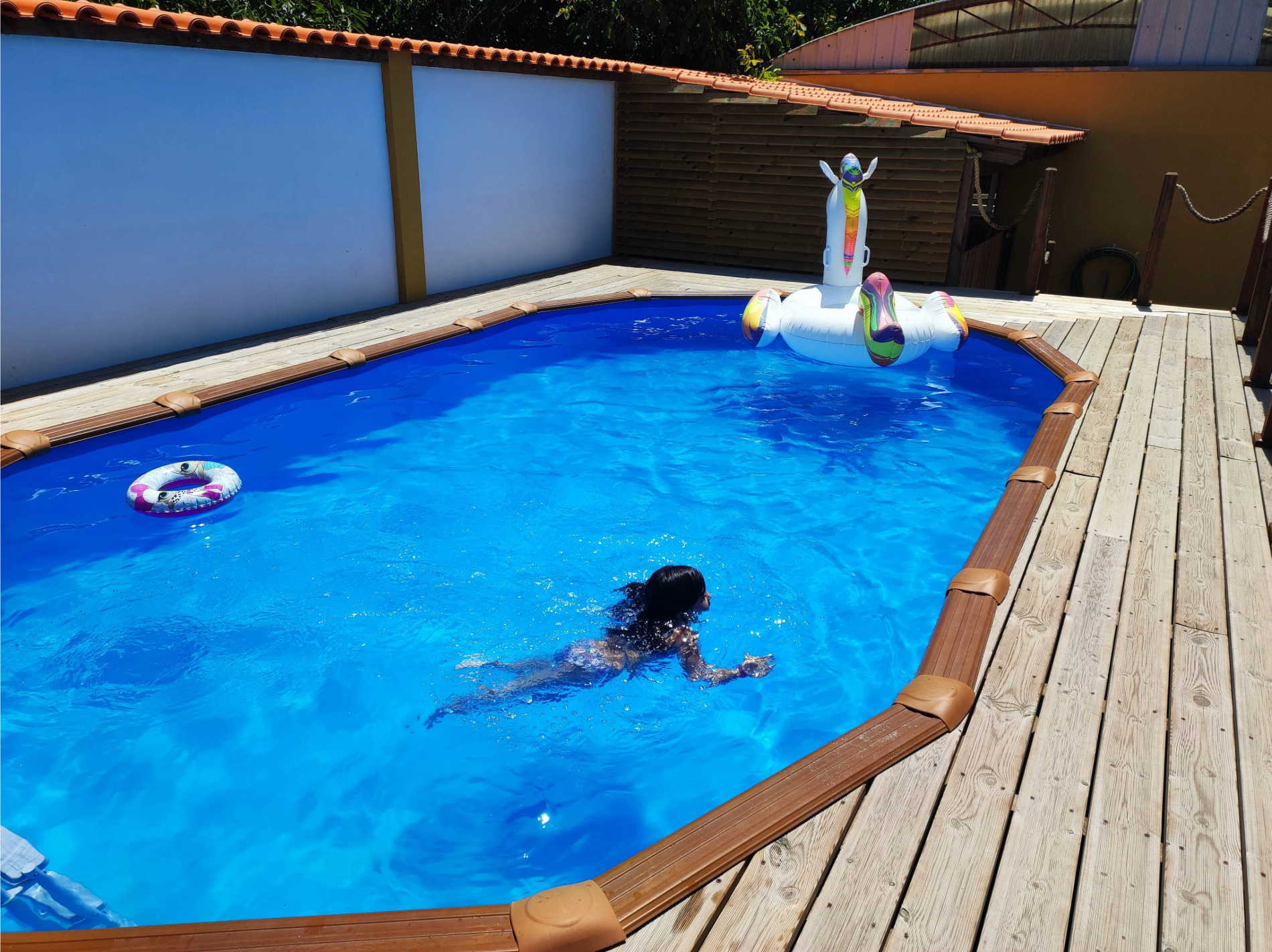 A nossa piscina de água salgada, com 1,20 m de profundidade, proporciona uma experiência refrescante e natural.